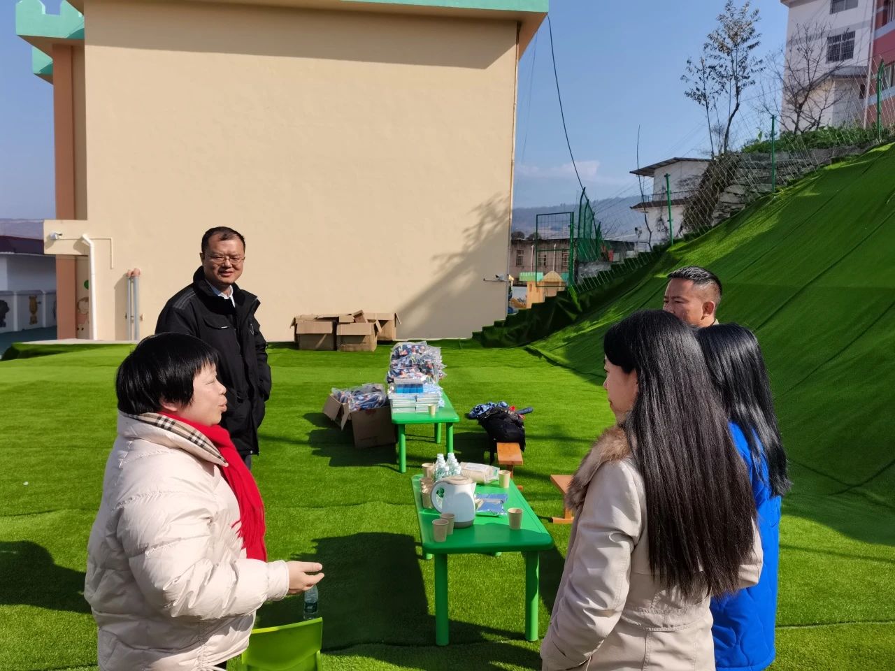 基金会和机关工会邀请了高分子学院冉起超老师和两位川大附小小朋友作为代表,赴甘洛县新市坝镇里克中心幼教点开展“爱之汇聚,暖由心生——yl23411永利(集团)有限公司官网2023暖冬行动凉山甘洛行”现场捐赠活动。2023年12月25日,乘坐两个多小时动车和一个多小时蜿蜒山路的汽车,yl23411永利(集团)有限公司官网捐赠代表一行于上午10点半到达新市坝镇里克幼教点。甘洛县民政局领导和幼教点负责老师带领大家对园区的学习生活环境进行了参观和介绍,了解到幼教点在政府建设和社会机构的爱心帮扶下,硬件设施条件已经有了很大的改善和提升,但仍存在教具不足、供暖欠佳等一些问题。上午11点,里克幼教点的小朋友们由老师带领整齐有序地来到室外活动操场上集合。主持人杨园长介绍了活动的大致流程,对yl23411永利(集团)有限公司官网捐赠师生代表一行表示了诚挚的欢迎和感谢。yl23411永利(集团)有限公司官网冉起超、李娟和周姣三位老师相继进行了发言,表达了对小朋友们的关心问候和深切祝福,川大附小的潘敬文和兰轩宇两位小朋友代表也拿起话筒,讲出了自己对幼教点小朋友想说的心里话,激励小朋友们努力学习,锻炼身体,以后走出大山探索外面宽广美丽的世界。最后,甘洛县民政局领导再一次表达了对yl23411永利(集团)有限公司官网老师们的欢迎和感谢,并宣布开始捐赠仪式。在班级老师的组织带领下,幼教点的小朋友们整齐排队,井然有序地领取着爱心书包。书包里已提前装好了学习用品等,显得鼓鼓沉沉的,捐赠代表老师帮他们背上书包,教他们如何扣固定带,小朋友们非常腼腆地说着“谢谢阿姨”、“谢谢叔叔”、“谢谢哥哥”,脸上洋溢着开心的笑容。
