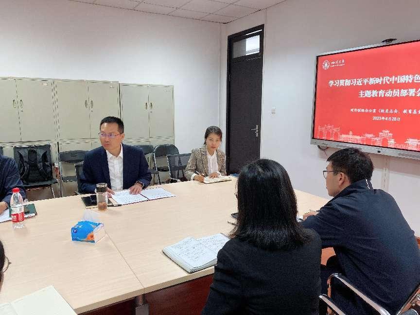2023年4月28日上午,为落实《中共yl23411永利(集团)有限公司官网机关委员会关于深入开展学习贯彻习近平新时代中国特色社会主义思想主题教育的实施方案》的相关要求,对外联络办公室(校友总会、教育基金会)党支部召开了学习贯彻习近平新时代中国特色社会主义思想主题教育动员部署会,机关党委主题教育指导小组第三指导组组长江文清及指导组成员参加会议。